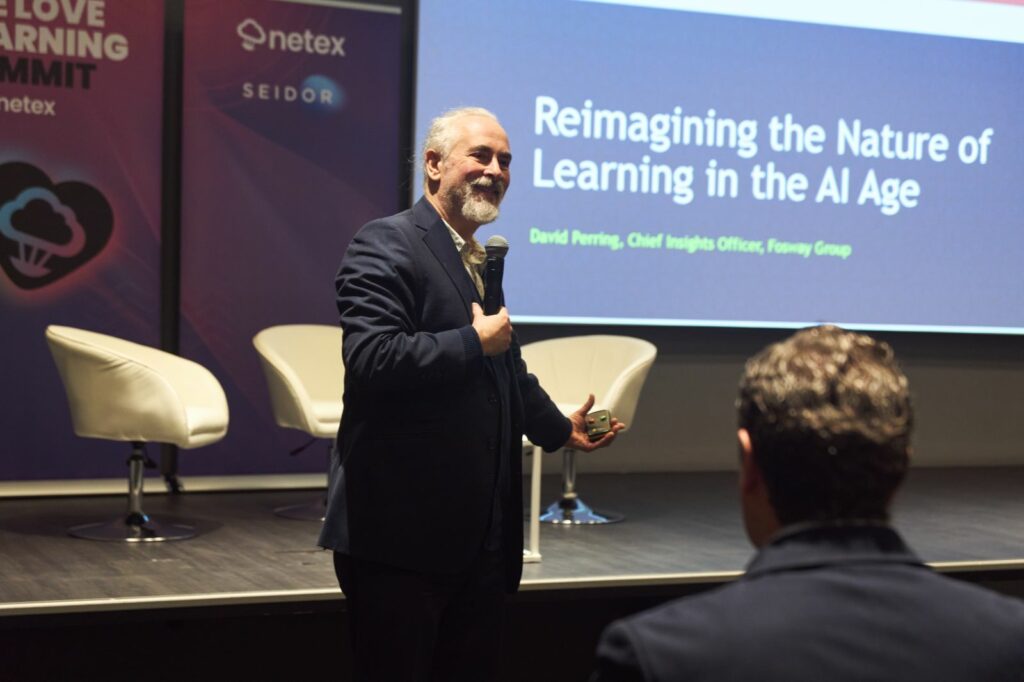La ponencia inaugural corrió a cargo de David Perring, Chief Insights Officer de Fosway Group y una de las voces más influyentes del mercado europeo del L&D. Su mensaje fue que la IA no está “mejorando” el trabajo, lo está redistribuyendo.