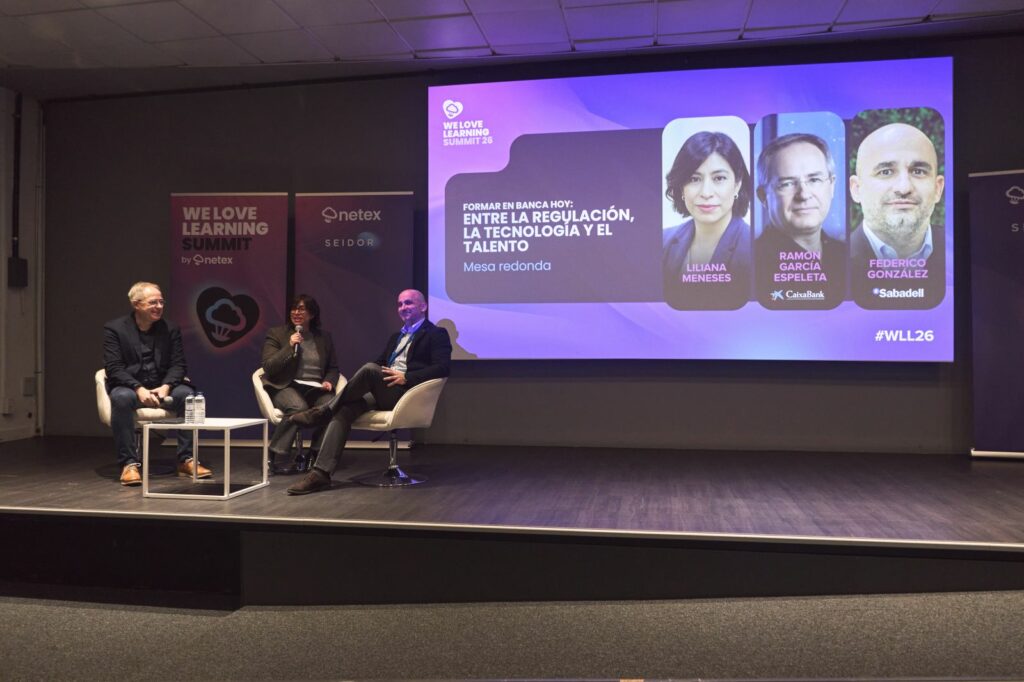 Las mesas redondas sectoriales aportaron una visión más operativa de los retos actuales. En la dedicada a banca, Ramón García Espeleta, responsable de desarrollo y transformación de personas en CaixaBank, y Federico González, director de Talento y Cultura de Banco Sabadell, coincidieron en que la inteligencia artificial está cambiando la forma de desplegar la formación, pero no el punto de partida.